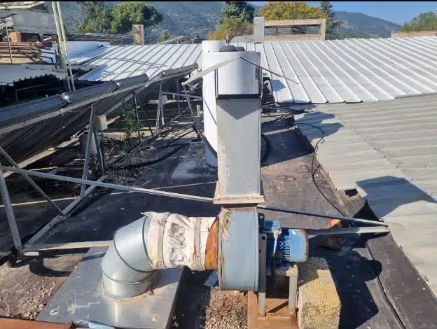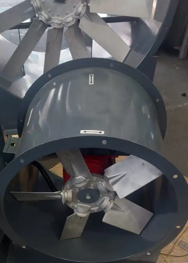מפוח תעלתי או צירי שמתאים לטמפרטורות גבוהות, בנוי מחומרים שמותאמים לתנאים סניטריים ולסביבה לחה או שומנית.